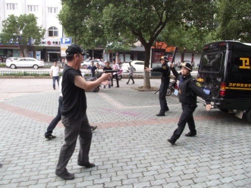 象山縣公安局舉行了反恐怖應(yīng)急實(shí)戰(zhàn)演練,寧波安邦護(hù)衛(wèi)有限公司象山大隊(duì)參與了配合。演練內(nèi)容為:當(dāng)運(yùn)鈔車到達(dá)民生銀行網(wǎng)點(diǎn)正卸款箱時(shí),突遇兩名持槍械恐怖分子沖向運(yùn)鈔車,擊斃兩名押運(yùn)員后,用煙霧彈實(shí)施爆炸,正要奪款箱而逃時(shí)銀行兩名保安員沖出網(wǎng)點(diǎn)與恐怖分子搏斗。公安機(jī)關(guān)接警后,110指揮中心立即下達(dá)指令,迅速調(diào)集武警、巡警、交警、刑警、消防等百余名警力和120急救中心緊急趕赴現(xiàn)場,進(jìn)行消防滅火和醫(yī)療急救,公安機(jī)關(guān)進(jìn)行現(xiàn)場勘查,并堵截交通要道,最終擒獲恐怖分子,追回款箱??h政府、縣公安局有關(guān)領(lǐng)導(dǎo)到場觀摩了演習(xí)。 |